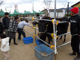 会場に訪れた家族連れは、牛と一緒に写真を撮ったり、牛を飼っていた昔話に花を咲かせていました。