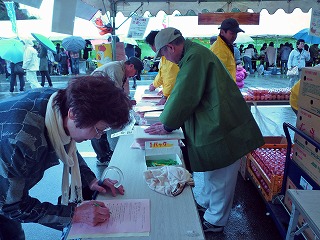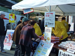 三重県養鶏協会では、平成24年11月11日(日曜日)と18日(日曜日)に多気町おいないまつり、飯南ふれあい祭のそれぞれの会場で、会員が生産した新鮮なブランド卵800パック(2会場合計)を1パック100円という特別価格で販売しました。 このイベントでは、鶏卵の販売を通して、地元産の鶏卵・鶏肉の消費拡大や理解醸成を目的として開催しているもので、養鶏協会の恒例イベントになっています。また、今回の売上金はすべて日本赤十字社を通して東日本大震災への義援金として寄付させていただきます。 11日の多気町おいないまつりには、開場前からの雨と風との荒天にもかかわらず3千人の来場者がありました。県内各地のブランド卵がずらりと並べられ、お客さまもどれを選ぶのか迷われたようすでした。 18日の飯南ふれあい祭は、風が強く寒い一日になりましたが、開場時間からたくさんの来場者がありました。タマゴの特別販売は、来場の皆さんもよくご存じで今回も好評でした。 また、両日とも鶏卵・鶏肉についてのアンケートにも多数の方のご協力をいただきました。ありがとうございました。 この特別販売のために鶏卵を提供いただいた生産者の皆さんは次の農場の方々です。(順不同) 地主共和商会(多気町)、山下鶏園(松阪市)、南勢養鶏(南伊勢町)、鳥鹿養鶏園(津市)、浅野養鶏(鈴鹿市)、川北エッグファーム(鈴鹿市)、久保田養鶏(鈴鹿市)、スズランファーム(鈴鹿市)、センダ養鶏(鈴鹿市) |