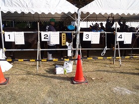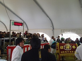 三重県食肉消費対策協議会(事務局:三重県畜産協会)が「コツをつかんで、もっとおいしく」をテーマに国産食肉フェアを開催しました。会場では、食に関する情報として「食肉の保存のコツ」「食肉調理のコツ(焼く、煮る)」「三重のブランド牛」などに関係するパネルの展示やリーフレットなどを配布し、消費者の皆さんに理解を深めてもらいました。 同時に松阪肉事協協同組合の精肉店の皆さんの協力により地元の世界ブランド「松阪牛」を使ったすき焼き2000食を提供しました。10時スタートのこのイベントには、7時過ぎから行列ができ始め、開始予定時刻には予定者数を超えたため「予定終了」となりました。 松阪牛まつり会場では、第64回松阪肉牛共進会が開催されました。 予選を勝ち抜いた牛(黒毛和種雌)50頭を三重県畜産研究所主幹研究員の三宅健雄審査長らが、体格や毛並、肉付きなどを審査した結果、多気町の畑敬四郎さんが飼育した「にしふく7」号が優秀賞1席に選ばれました。「にしふく7」号は兵庫県産で、畑さんが1110日をかけて体重672キロに肥育しました。審査講評では毛並の美しさや皮膚の軟らかさが抜群であったという評価を受けました。 午後から開かれた競り市では、「にしふく7」号が津市の精肉店に2300万円で競り落されると会場では拍手がわきました。 なお、畑さんの優秀賞1席は、2年ぶり三度目の受賞でした。 |