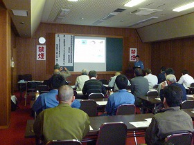 近隣諸国では口蹄疫や鳥インフルエンザが継続的に発生しています。 我が国でも豚流行性下痢が発生する等、家畜生産者にとっては、予断を許さない状況が続いています。 このような状況の中で各畜産農場に求められるのは、高い自衛防疫意識です。 三重県畜産協会では、(公社)中央畜産会の委託事業により、昨年に引き続き県内3ヶ所で自衛防疫に関する研修会を開催しました。 研修会は、県の家畜保健衛生所の指導により、諸外国の家畜伝染病の発生状況について研修し、実演により消毒の手法について研修しました。 車両の消毒については、車全体の消毒と併せて、重点的にタイヤハウスを消毒し、運転席のハンドル、シート等についても入念に消毒する指導を研修しました。 参加いただいた皆さんからは、「防疫意識を再度高めるよい機会になった。」等の感想が寄せられました。 各地での開催状況は次のとおりです。 |
