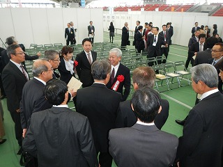 産業功労者表彰は、事業活動または団体活動を通じ、市場の開拓や拡大、産業界の人材育成、雇用の拡大等により本県の産業振興に寄与し、功績顕著な方を表彰することにより、その功労を賛えるとともに、次代を担う産業者に対し志気の高揚を図ることを目的として昭和60年に創設されたものです。 川北氏は次の点の功績が高く評価されこの度の受章となりました。 ■三重県養鶏協会会長として、鶏卵の消費拡大に取り組み、養鶏産業の発展に尽力した。 ■「みえの安心食材表示制度」の普及に努め、三重県産たまごの安全・安心・信頼性の向上に貢献した。 ■平成23年に三重県で発生した高病原性鳥インフルエンザへの対応では、リーダーシップを発揮し、業界への被害を最小限に抑えること、風評被害の防止に努めるとともに、その後の防疫意識・体制のレベルアップに努めた。 [表彰式] 表彰式は、受章者の功績を広く県民に披露するため、平成27年11月20日(金曜日)に「みえリーディング産業展2015」の会場である四日市ドームで執り行われました。 鈴木知事の代理として臨席された石垣三重県副知事から表彰状及び産業功労章(メダル)が授与されました。 なお、今年の受賞者は、農林水産業部門2名、商工業部門3名、観光部門1名、土木建築業部門1名の計7名でした。 受章された川北氏は、祝賀に駆け付けた養鶏協会役員の皆さんと受賞の喜びを分かち合っていました。 |