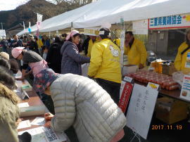 三重県養鶏協会は、12日開催の多気町おいない祭、19日開催の飯南ふれあい祭会場で鶏卵の消費拡大を願い、タマリエ検定を実施し、回答者を対象に鶏卵を特別価格で販売しました。販売した鶏卵は地元の養鶏場で生産された新鮮なブランド卵でしたが、この日は1パック100円という特別価格での販売でした。多気、飯南の両会場ともにこのイベントは定着しており、たくさんのお客様にご購入いただきました。また、「三重の安心食材」の認定を受けている鶏卵が販売されたことから、県担当職員がパンフレットの配布を行い、「三重の安心食材」に関するPRを実施しました。 タマリエ検定は、鶏卵のことを正しく知ってもらいたいというコンセプトで、初級からだんだんとステップアップしていくものです。「卵は1日1個しか食べてはいけない。」という間違った情報が浸透していますが、決してそんなことはありません。また、卵のカラの色の違いは、にわとりの種類の違いによるもので、同じエサを食べた場合、中身の栄養価は変わりません。そんな内容を盛り込んで楽しみながら回答してもらいました。 鶏卵を特別価格で提供いただいた養鶏家の皆さんは次の方々でした。(順不同) スズランファーム(鈴鹿市)、青山(鈴鹿市)、仙田養鶏(鈴鹿市)、東洋テクノファーム(鈴鹿市)、川北養鶏場(鈴鹿市)、高木養鶏(鈴鹿市)、久保田養鶏(鈴鹿市)、鳥鹿養鶏園(津市)、山下鶏園(松阪市)、地主共和商会(多気町)、南勢養鶏(南伊勢町) タマリエ検定の詳しい内容はこちら[日本卵業協会HP(タマリエ検定)] 会場で配布したタマリエ検定の解答[PDF] |