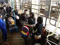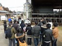 この催しは、畜産の農場を訪問して現場のようすを見てもらったり、意見交換することで畜産への理解を醸成することを目的に開催しています。 この日は、津市にある学校法人大川学園三重調理専門学校の生徒40名、先生2名を鈴鹿市の酪農家渡辺牧場へお誘いしました。 口蹄疫の惨禍がまだ記憶に新しく現在でも韓国で多数の発生があることから、農場への立ち入りについては、十分な防疫意識を持ってもらい、また、クツなどの消毒に協力いただきながらの実施になりました。 [渡辺牧場にて] 渡辺牧場は、酪農教育ファームの認証農場でもあり、牧場後継者の友裕さんやご両親の協力により場内の紹介や酪農について、乳牛についてといったお話を聞かせてもらったり、牧草の給与を体験してもらいました。 牛舎はフリーストール構造で、その中をのんびりと牛が行きかうようすを見たり、搾乳室では、自動化された搾乳器の説明を聞きながらティートカップに手を当て、高度な搾乳技術を体感したりしました。 [意見交換会] 三重県酪連河野参事からは、牛乳の効果(効能)、使用(調理)方法、牛乳の加工過程、牛乳を原料とする製品等について説明を受けました。 質疑では、「酪農経営戸数が減少している中で、継承しようと決意したのはなぜか。」といった質問や「飼料の良否や季節が、牛乳の質に影響するのか。」「市販されている牛乳に価格差があるのはなぜか。」といった具体的な質問がありました。 これらの質問にお答えしながら、「酪農を知ってもらう」喜びを感じた1日となりました。 |