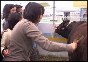 始めて間近で見る牛にドキドキですが、触ってみると、「温かい」「すべすべしている」こともわかしました。 自分たちが食べた牛は、愛情を込めて育てられたことを知りました。 |