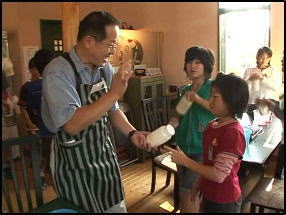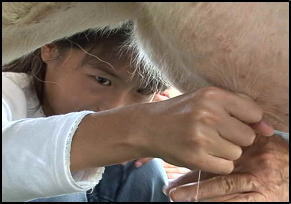 学校を飛び出して、校外学習です。 松阪牛の学習だけでなく、乳牛の勉強もしました。 バターづくりに挑戦。 初めて作ったバターの味は? |