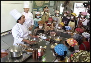 松阪牛の肉で料理をしよう。 プロの料理の先生に「煮込みハンバーグ」づくりを学びました。 「お家でも作ってみてください。」 |