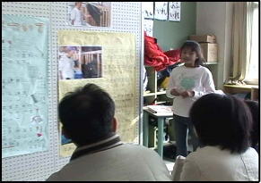 学習発表の日。 これまで学んできたことを、みんなでまとめて、お父さんやお母さんたちにも聞いてもらいました。 しっかり学んできたことをうまく伝えられたようです。 |