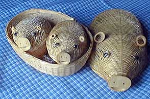 左の写真のブタサンは数ある中でもお気に入りのブタサンで、「デザインや手触りが好きです」ということでした。 |
