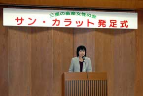 発足式には、この会の発足に当たりご支援をいただいた団体、行政、企業等からたくさんのご来賓のご臨席を賜わり、三重県農業協同組合中央会の田中利宣会長(社団法人三重県畜産協会会長を兼務)や社団法人中央畜産会の中瀬信三副会長、三重県農水商工部の吉田鎭夫総括室長から異口同音に「三重の畜産女性の会の発足を祝い、今後の活動に期待する」という旨の祝辞をいただきました。