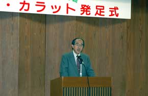 しかし、私自身の力は微々たるもので、皆さんのご希望ご意見にどう応えていけばよいのか不安も一杯である。皆さんからのご協力を得ながらこの会を盛り上げていきたい。きょう、踏み出す一歩は小さいかもしれないが、振り返ったときには、しっかりとした足跡が見えるようにしたいと思う。」と述べました。
