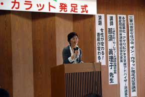 講師には、熊本県で多彩な活動をし、かつ全国畜産縦断いきいきネットワークの代表世話人補佐も務めていただいている那須眞理子さん(ご本人の希望により「先生」とは表記しない)をお招きしました。