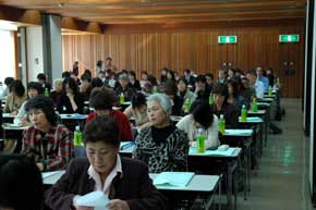 その内容に聞きほれた講演は、あっという間に終わりの時間となりましたが、その後は、茶話会と銘打った気取らない交流会を開催しました。お菓子とお茶で和んだ雰囲気の中では、さっきまでの緊張もほぐれ、自分たちの言葉で語り合うことができたと思います。