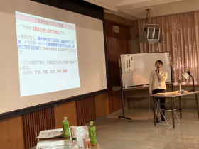 講師には事務局から1名と、サン・カラット会員の生産者2名と県職員2名の計4名をお招きし、ご自身の畜産経営やそのこだわり、お仕事内容、やりがいなどについてお話していただきました。 |