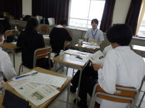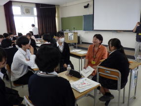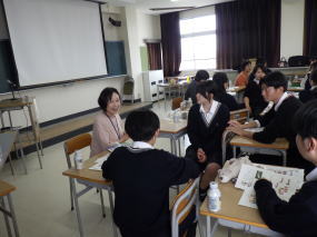 講演の後は生徒さん達に5つのグループを作っていただき、その中へ講師がひとりずつ入って交流していただく時間をつくりました。