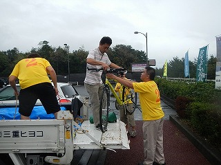三重ヒヨコさんカーから玉三郎を降ろす | ジャ〜ンッ、玉三郎! 走る気、満々 | ||