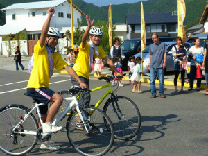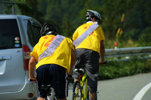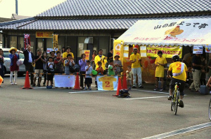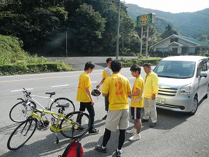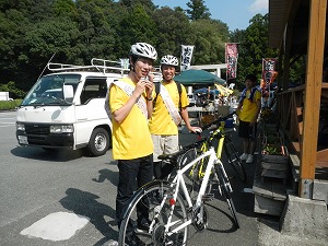 荷坂峠に挑む二人のチャリーダー 元気よくスタート 荷坂トンネルを抜けた 予定とおりの走行 滝原宮近くの木つつ木館で休憩 スタッフのサポート 拍手の中、よって亭に到着 松阪へ向けてのチャリーダーにバトン