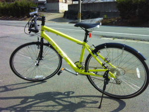 初めまして、玉二郎と玉三郎です これが、うわさの玉兄弟だよ〜ん。 白身と黄身・・・じゃなくて、 色白のチャリ君が、「玉二郎」、そして黄色(養鶏家の好きな色)のチャリ君が、「玉三郎」です。 「1日にたまごを2個、3個食べましょう!!!」というメッセージを込めた命名です。 前のギア3段、後ろのギア8段ということで、3×8=24段のギアで、全力疾走orヘトヘト走りに応えてくれる頼りになるヤツです。 こいつをうまく操って、登坂もスイッスゥイィ〜ッ〜ッ〜ッ・・・ 玉二郎 玉三郎 両者、そろい踏み グッと握りしめたくなるハンドル 動力のミナモト・・・ペダル お尻をのっけるサドル ちょっと、待ったぁ〜と心を引き締めるブレーキ 細く引き締まったタイヤ フロントギア3段、リアギア8段