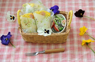 ①の上に⑤をのせ、クレープ状に包み、完成。